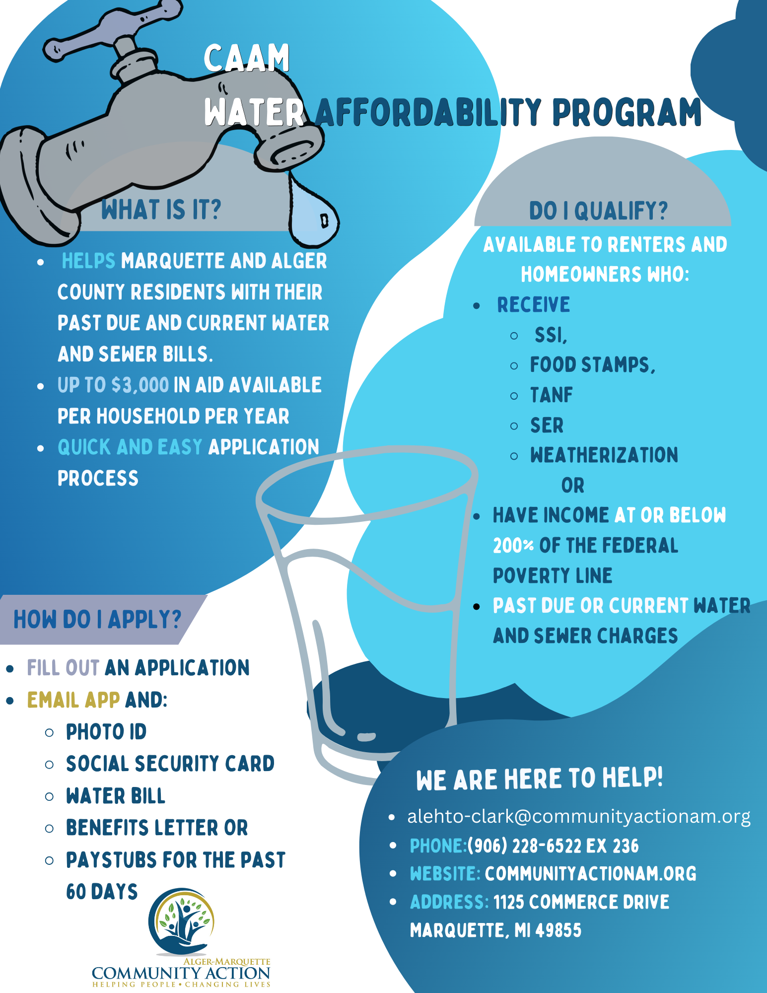 Home / News / Recent News / CAAM Water Affordability Program CAAM Water Affordability Program April 15, 2024 This program is to help residents with their past due and current water bills. Application Flyer PrevPrevious NewsFebruary & March 2024 Stats Next NewsTelehealth WorkshopNext