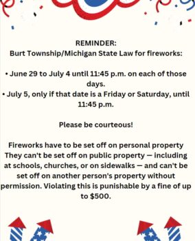 Home / News / Recent News / Fireworks Reminder! Fireworks Reminder! July 3, 2023 PrevPrevious NewsPlanning Commission Member Next NewsNovember 7, 2023 ElectionNext
