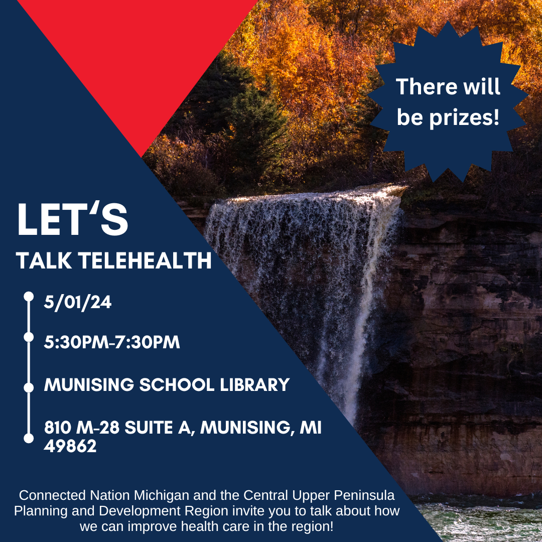 Connected Nation is hosting a series of workshops in hopes of receiving community input on telehealth in the region. Healthcare was a popular discussion point in the master planning process for Burt Township. We hope anyone interested in this topic will plan to attend the meeting in Munising on May 1st.